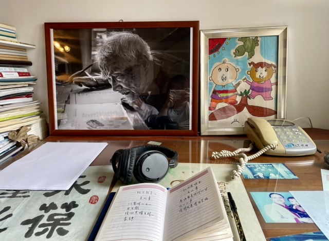 苏州河畔,光复西路,一间朝南的卧室兼书房,透亮的窗台边,那张压着透明玻璃板的柚木书桌,就是属于圣野的诗的“园地”。不久前,圣野度过了自己的虚岁百岁生日,距离他“做一百岁到一百十五岁的诗娃娃”的目标,又近了一步。